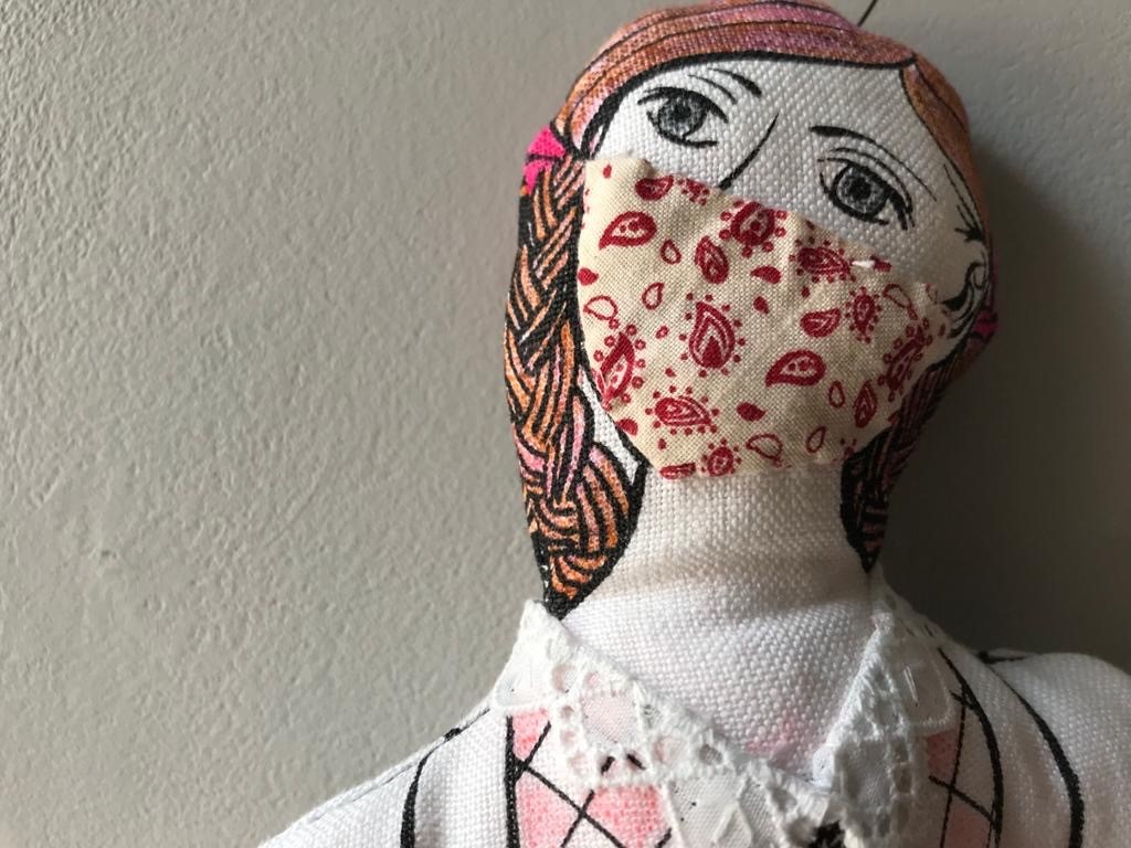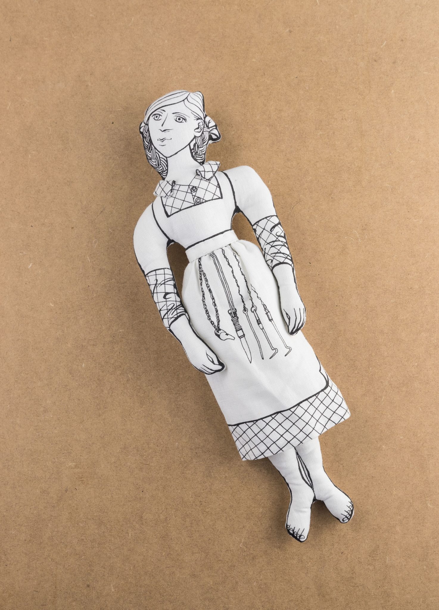 The prototype pattern was displayed during Our Linen Stories 2018 tour to Lisburn Cathedral in N.Ireland and the first doll was created in time for our 2019 revisit to the Irish Linen Centre and Lisburn Museum in May 2019; the Museum gratefully accepted a Linen Millie into their permanent collection at this time.